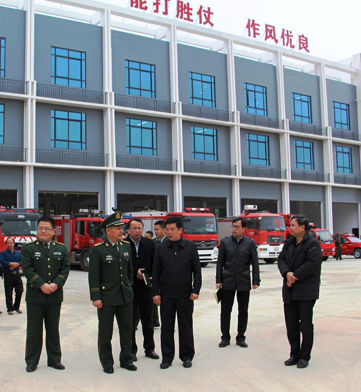 2月23日上午,南寧市消防支隊支隊長鄧錫中在經(jīng)開區(qū)黨工委書記、管委會主任何尚漢、經(jīng)開區(qū)消防大隊大隊長詹寧、綠港集團(tuán)董事長楊東等領(lǐng)導(dǎo)的陪同下到綠港集團(tuán)承建的吳圩空港新城消防站開展調(diào)研。