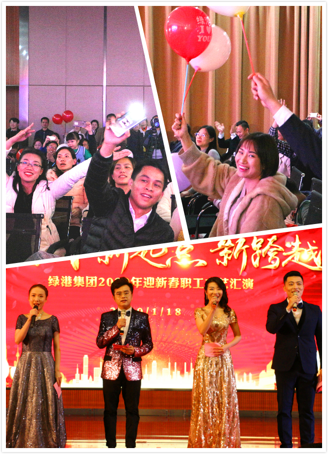 隨后,集團總部喜慶歡騰的舞劇《鼠舞龍騰鬧新春》拉開了綠港集團2020年職工文藝匯演的序幕,集團領(lǐng)導(dǎo)班子,集團各部門、各子公司干部員工接連登場,以17個內(nèi)容豐富、積極向上的文藝節(jié)目同賀新春。通過舞蹈、音樂情景劇、歌曲、小品、詩朗誦、文化展示等形式,充分展現(xiàn)綠港鐵軍勇于拼博、團結(jié)奮進的風(fēng)采和廣大職工團結(jié)上進的精神風(fēng)貌?!毒G港建設(shè)者》以鏗鏘有力的舞蹈,表現(xiàn)出奮戰(zhàn)在經(jīng)開區(qū)建設(shè)一線的綠港人攻難克艱的決心和擔(dān)當(dāng)?shù)臍馄?;科巨公司帶來的《大話西游之治理黑臭水體》則講述了綠港鐵軍在打贏黑臭水體攻堅戰(zhàn)中,挺身而出,爭做攻堅排頭兵的故事;集團營銷管理中心的歌曲串燒、科巨公司《 We Will Rock You》、嘉通公司《上海灘》和榮鑫公司的《榮鑫似首歌》不僅讓我們一睹國風(fēng)、爵士風(fēng)、上海灘和懷舊港風(fēng)的風(fēng)采,一句“綠港飛得更高”的高歌更是把全場氣氛帶到了最高點!舞蹈《芒種》、《橋邊姑娘》和萬方公司《溜溜的山寨溜溜的醉》是柔情萬種,百轉(zhuǎn)千回;小品《你有沒有在乎過我的感受》、《家有兒女》取材日常生活,表達了家和百事興的主題;九略公司《中華攢 瑰寶情》通過對中華傳統(tǒng)文化的展示,激發(fā)了廣大職工的文化自信;集團辦公室、中港興公司聯(lián)合準(zhǔn)備的節(jié)目《我們是一家人》通過手語舞蹈表現(xiàn)出集團公司團結(jié)一心,同事間真誠有愛的良好面貌,讓大家沉浸在一片愛的海洋之中;嘉通公司的朗誦《青春萬歲》則透過稚嫩的童聲帶大家重返美好的青蔥歲月。各節(jié)目精彩紛呈,引得臺下觀眾呼聲連連。最后,節(jié)目表演在集團公司領(lǐng)導(dǎo)班子帶來歡樂活潑的舞蹈《愛》中告一段落,現(xiàn)場四處洋溢著歡樂祥和的氣氛。