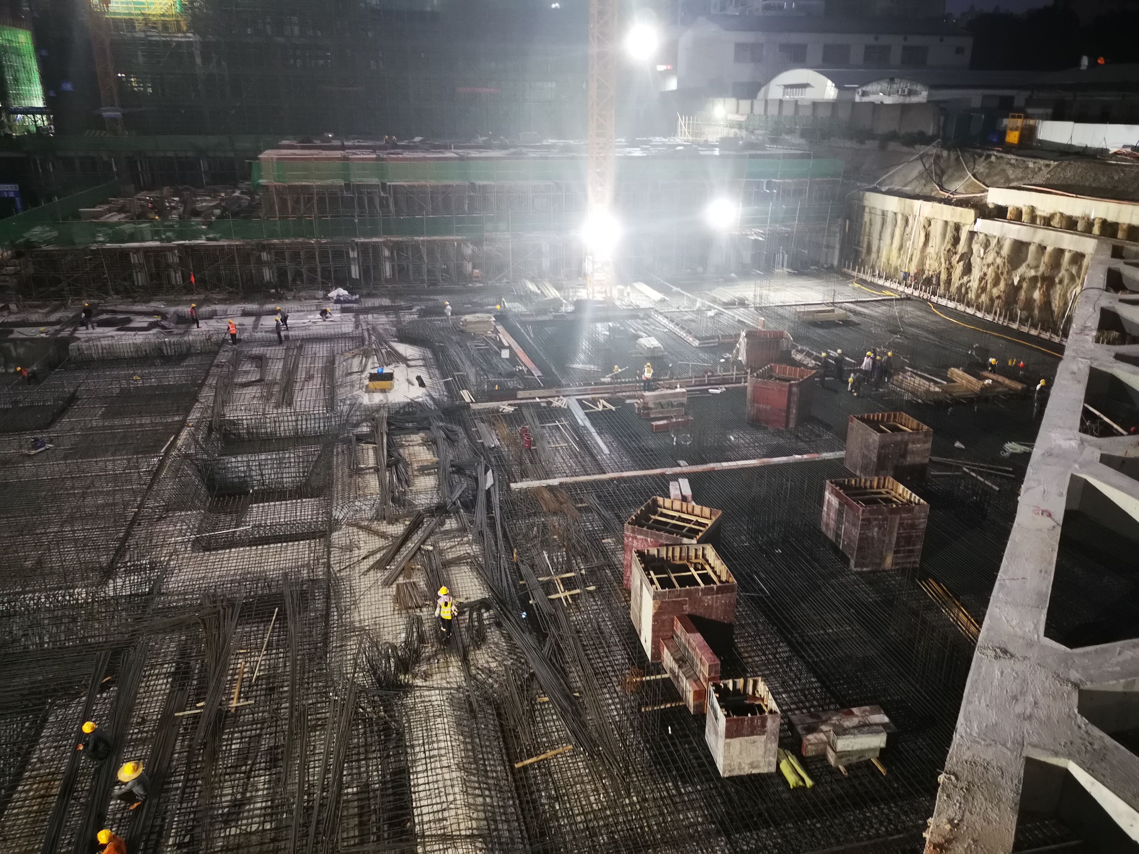 在完成支護(hù)樁施工及土方外運工作后,接下來就是緊張的基礎(chǔ)及地下室施工,在剩下不到40天的時間里完成兩層地下室施工,這是一場與時間賽跑的大戰(zhàn)。推進(jìn)小組全體成員頂住壓力,緊盯5月31日預(yù)售節(jié)點目標(biāo),開足馬力全力推進(jìn)項目建設(shè)加速跑。推進(jìn)小組實行每天碰頭會,每周安全生產(chǎn)推進(jìn)會,按照工期節(jié)點倒排施工計劃,層層細(xì)化每日施工任務(wù),持續(xù)加強內(nèi)外溝通。依據(jù)工程進(jìn)展情況,督促施工單位同時展開多個作業(yè)面,增加施工人員及機械設(shè)備的投入,采取倒班等措施搶回時間,保證施工現(xiàn)場做到“見縫插針、動態(tài)管控”。經(jīng)過項目推進(jìn)小組及參建各方2個多月的日夜奮戰(zhàn),項目8#、6#樓于4月12日、5月13日提前完成主體結(jié)構(gòu)封頂;3#樓5月27日提前完成±0.00層達(dá)到預(yù)售節(jié)點;在臨時增加工程量的情況下, 1#樓于6月5日完成集團(tuán)公司設(shè)定的項目預(yù)售節(jié)點攻堅目標(biāo)。