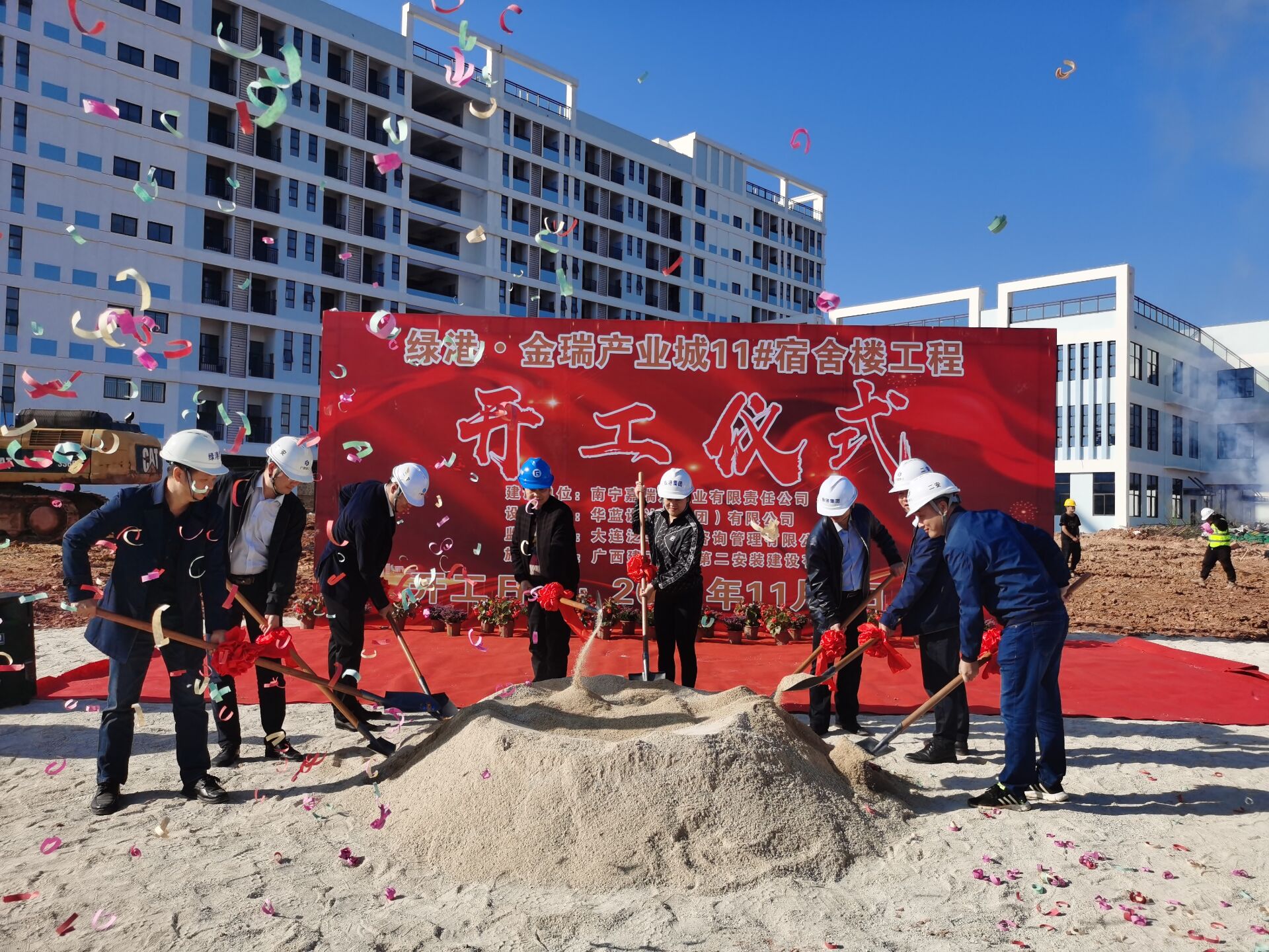 鞭炮齊鳴,禮花綻放。11月9日,由綠港集團(tuán)下屬嘉瑞通公司投資建設(shè)的綠港?金瑞產(chǎn)業(yè)城11#宿舍樓工程舉行開工儀式。