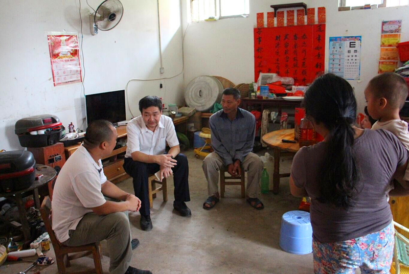 9月7日上午,在河浪村駐村第一書記覃瑞肖和村委會工作人員的帶領(lǐng)下,綠港集團(tuán)黨委精準(zhǔn)扶貧工作組分為6個(gè)小組,分別慰問了河浪村的26戶貧困戶,分別給貧困戶送去了大米和花生油等慰問品,提前祝他們中秋節(jié)快樂。在貧困戶韋啟揮老人家里,綠港集團(tuán)財(cái)務(wù)總監(jiān)關(guān)月娥親切地與韋啟揮老人拉起了家常?!凹依镉袔桩€地?”“家里甘蔗今年的長勢好不好?”“家里孫兒孫女上學(xué)的學(xué)習(xí)成績好不好?”等等。當(dāng)了解到韋啟揮老人的兒子通過政府針對扶貧小額免息貸款,積極開展產(chǎn)業(yè)化種植,家里的經(jīng)濟(jì)情況在逐步好轉(zhuǎn)時(shí),關(guān)總監(jiān)高興地鼓勵(lì)老人的兒子多開動腦筋,創(chuàng)新思路,爭取早日脫貧。在貧困戶梁蔭坎的家中,集團(tuán)公司總經(jīng)理助理黃麗琴親切地與梁蔭坎及其年邁的母親交談,看到梁蔭坎把自己的小樓房收拾得干干凈凈,了解到梁蔭坎的種養(yǎng)業(yè)豐收在即,為他感到高興,同時(shí)告訴他如果在銷路上有什么困難,綠港集團(tuán)將想辦法幫助解決。在貧困戶梁祖然和梁祖旭家里,看到建筑工人正在給他們家蓋房子時(shí),黃總助關(guān)切地詢問是否申請到危改房補(bǔ)助、補(bǔ)助夠不夠等問題,得知蓋房子能領(lǐng)到20000多元的補(bǔ)助資金時(shí),黃總助心里踏實(shí)了好多。在貧困戶盧創(chuàng)旭家里,嘉通公司總經(jīng)理陳志杰與盧創(chuàng)旭一家圍坐在一起,共同探討早日脫貧的道路……這次下村開展精準(zhǔn)扶貧工作,工作組組員們對照“八有一超”的標(biāo)準(zhǔn),認(rèn)真梳理并記錄了對口幫扶貧困戶家庭的實(shí)際情況,為下一步開展精準(zhǔn)扶貧工作做好準(zhǔn)備。