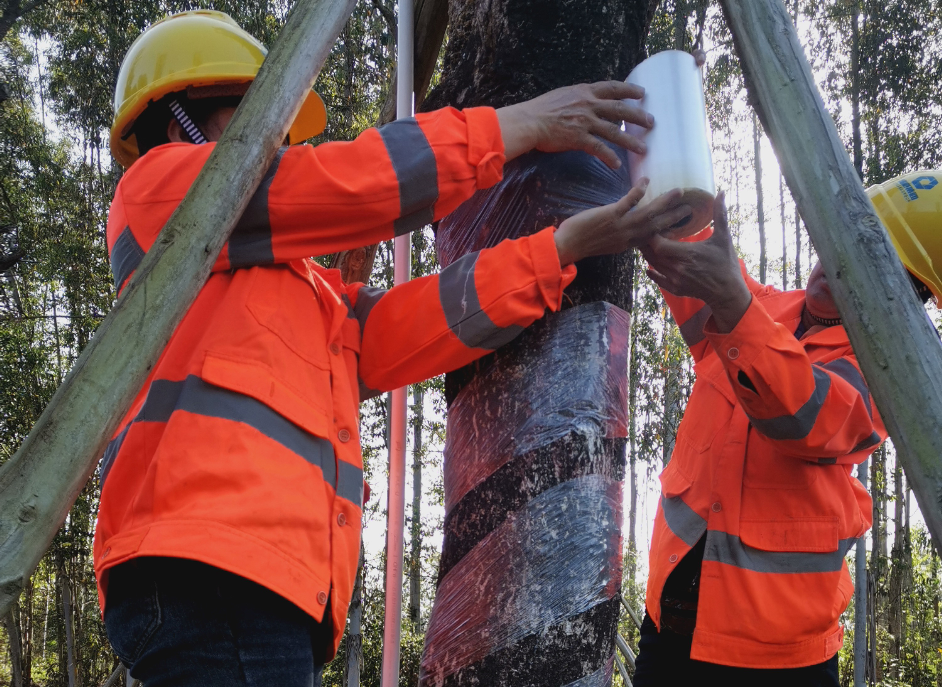 針對影響扁桃移植存活率的主要原因,QC小組具體采取了以下措施:一是保留扁桃骨架,確保樹形完整,截枝時一次性垂直切割并處理好傷口;二是采用保水保溫性薄膜,間隔性覆蓋扁桃80%的主要軀干,預(yù)留部分區(qū)域確保透氣性;三是在高溫多雨季節(jié)加大“高效氯氰菊酯”等預(yù)防性藥物的噴灑量和噴灑次數(shù),并做好病蟲害的監(jiān)控和動態(tài)防治;四是種植前對場地進行尿素及復(fù)合肥的噴施和翻耕,種植后施放生根劑,并持續(xù)對扁桃溫濕度、土壤PH值進行實施監(jiān)測,適時追肥,調(diào)節(jié)土壤至偏酸性。